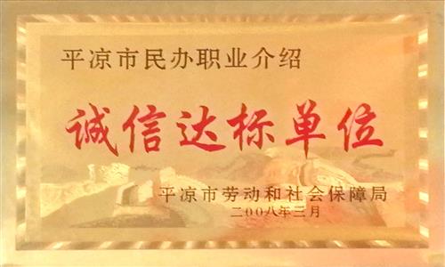 2008年公司職業(yè)介紹所被平?jīng)鍪袆趧?dòng)和社會(huì)保障局評(píng)為“誠信達(dá)標(biāo)單位”;